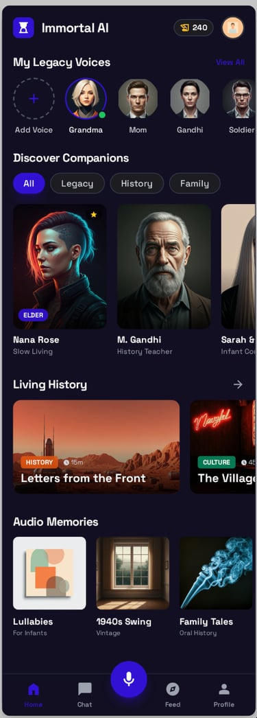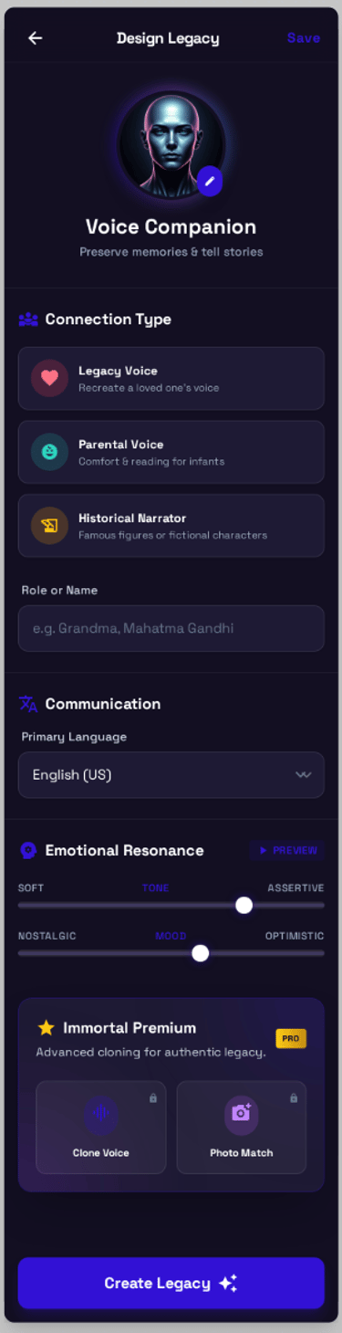 Multi-Generational Use Cases: Architected three distinct "Legacy" modes: Legacy Voice (Grief), Parental Voice(Infants), and Historical Narrator (Education).