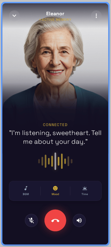 An AI-driven companion platform designed to alleviate loneliness and preserve family connections through authentic voice cloning.